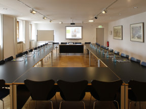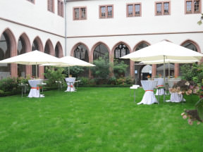 In den Foyers im EG und im 1. OG zeigt das Institut für Stadtgeschichte stets Kunstausstellungen zeitgenössischer Frankfurter Künstler im musealen Ambiente. Das Empfangspersonal sitzt hinter einem modernen Tresen; drei Sitzgruppen bieten sich für Pausen an. Ein programmierbarer Großmonitor ermöglicht Hinweise auf Ihre Veranstaltung. Prospekte oder anderes Infomaterial lässt sich stilvoll in speziellen, in die Wand eingelassenen Schrägablagen präsentieren.