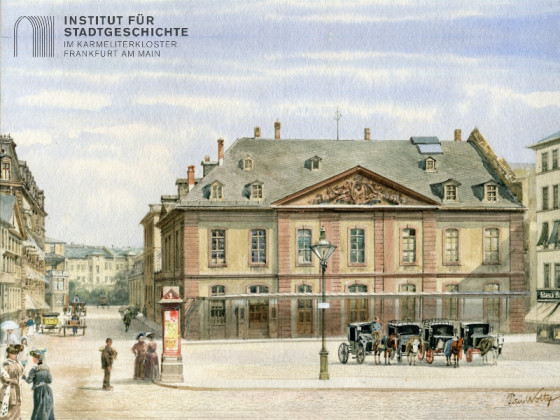 Frankfurt debattiert seit 2017 über die Zukunft der Städtischen Bühnen: Sanierung des bestehenden Hauses oder ein Neubau? Bewahrung der Doppelanlage mit Oper und Schauspiel unter einem Dach oder Trennung der beiden Institutionen? Festhalten am Standort Willy-Brandt-Platz oder ein Umzug? Tatsächlich wäre es für die Städtischen Bühnen nicht der erste Ortswechsel. Ihre vorige Heimat zeigt ein Bild des Architekturmalers Peter Woltze (1860-1925), das vor kurzem in den Besitz des Instituts für Stadtgeschichte gelangt ist.