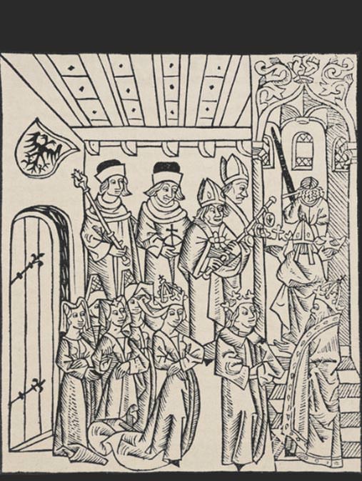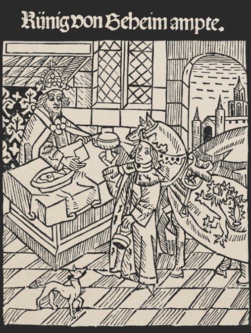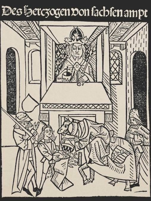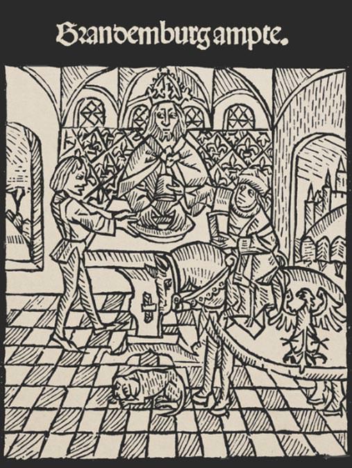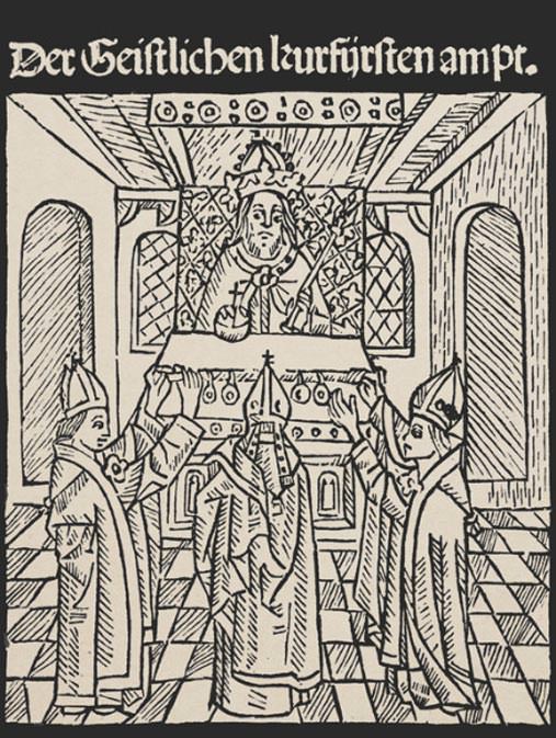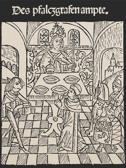 Holzschnitt aus dem ersten illustrierten Druck der Goldenen Bulle von 1485.