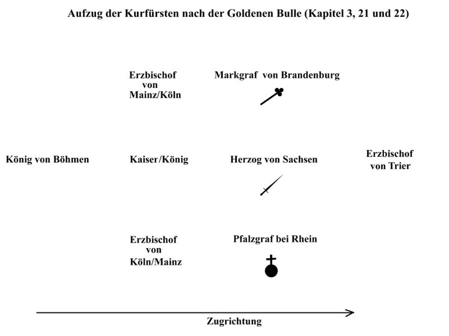 Aufzug der Kurfürsten nach der Goldenen Bulle (Kapitel III, XXI und XXII)