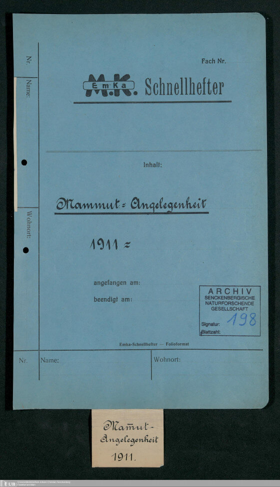 Digitalisiert wurden im Institut für Stadtgeschichte die Bestände V176 Senckenberg Gesellschaft für Naturforschung (Laufzeit der Digitalisate: 1817 – 1950); V48 Dr. Senckenberg Stiftung (Laufzeit der Digitalisate: 1730 – 1945) und S5: zwei der Tagebücher Johann Christian Senckenberg (S5 Nr. 99 & S5 Nr. 100.