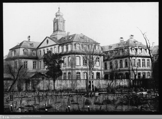 © ISG FFM, Best. V48 Dr. Senckenbergische Stiftung, Nr. 888 - Fotografien der alten Stiftungsgebäude am Eschenheimer Tor, von Porträts der Gemäldesammlung und der Neu- und Umbaumaßnahmen im Bürgerhospital in den 50er Jahren
