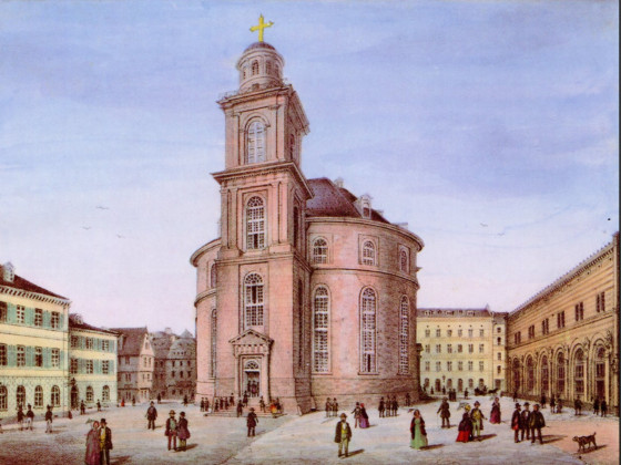 Frankfurt verwandelte sich nach 1800 vor allem am mittelalterlichen Siedlungsrand und am Mainufer von einer dunklen, muffi gen Altstadt zu einer großzügigen, luftigen Stadt im italienischen Stil. Besonders der Anlagenring als grüner Siedlungsrand nach außen versetzte die Menschen in Erstaunen. Die neue Stadtbibliothek, die 1833 fertiggestellte Paulskirche und zahlreiche Bahnhöfe bestimmten das Stadtbild.
