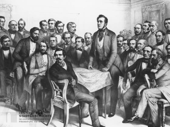 © Casino Fraktion mit Heinrich von Gagern in der Mitte 1848, ISG FFM S7Z Nr. 1848-53