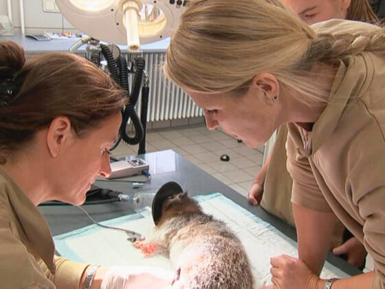 © Tierärztinnen Dr. Schauerte und Dr. Geiger bei einer Untersuchung, Szene aus „Der Doktor und die wilden Tiere“ (Foto: hr)