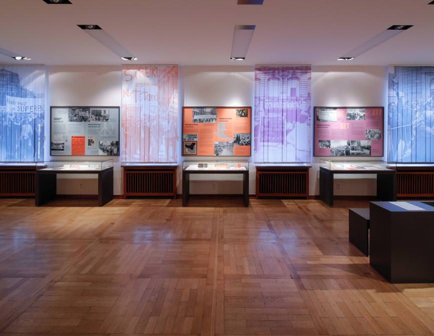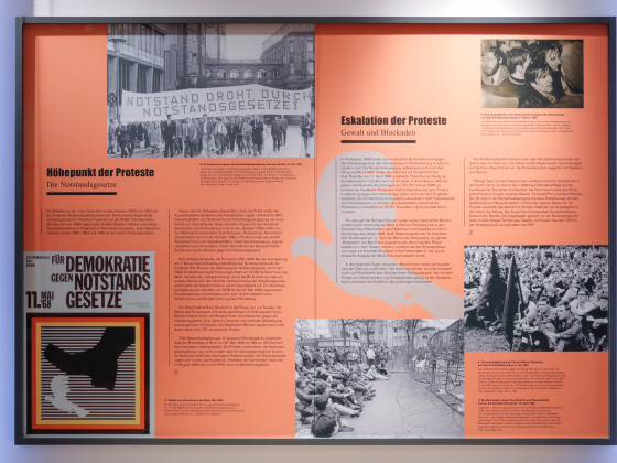 Angesichts dieser Vielfalt der Proteste widmet die Ausstellung diesem Bereich die gesamte Fensterfront im Dormitorium und visualisiert und erläutert die unterschiedlichen und zeitweise gemeinsam agierenden Protestgruppen sowie Protestereignisse nicht nur auf Bild- und Texttafeln, sondern auch in Vitrinen, einer Lesestation und als großformatige Bilder auf Lamellenvorhängen.