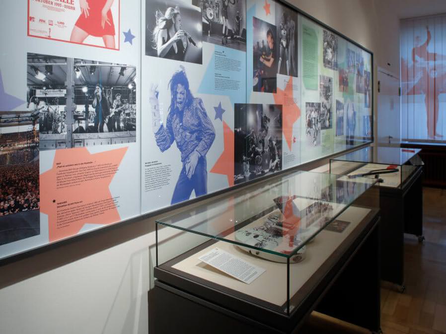 In den Vitrinen sehen die Besucher*innen zahlreiche Objekte aus der Nachlasssammlung des Instituts für Stadtgeschichte wie ein Jugendbildnis von Liesel Christ oder Musikequipment von Albert Mangelsdorff sowie Leihgaben wie die Badehose von Schwimmolympiasieger Michael Groß, einen Tennisschläger von Steffi Graf, den Bravo-Otto von Nadja Benaissa oder eine Gitarre von Tankard-Gitarrist Andreas Gutjahr, die die Band für ihren Auftritt beim DFB-Pokal-Finale in Berlin nutzte.