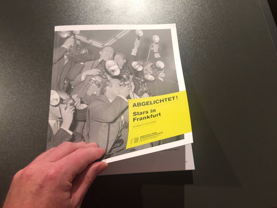 Passend zur Ausstellung ist im Verlag PH. C. W. Schmidt die von Dr. Markus Häfner verfasste Begleitpublikation „Abgelichtet! Stars in Frankfurt“ mit 192 Seiten und über 150 Abbildungen erschienen. Das Begleitbuch bildet die Inhalte der Ausstellung ab und ergänzt sie um zusätzliche Abbildungen, biographische Angaben zu den abgelichteten Stars und vertiefende Analysen zu den Ausprägungen des Startums. Die Publikation wurde in der Reihe „Kleine Schriften des Instituts für Stadtgeschichte“ herausgegeben und ist im Institut für Stadtgeschichte im Karmeliterkloster und im Buchhandel für 18 Euro erhältlich (ISBN 978-3-87707-226-4). [Weitere Infos und Bestellung]